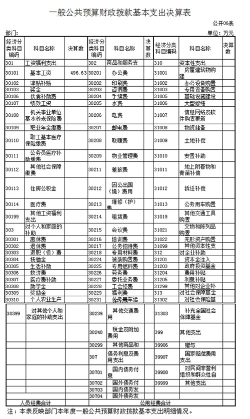 基本支出:指为保障机构正常运转、完成日常工作任务而发生的各项支出,包括人员支出和公用支出。