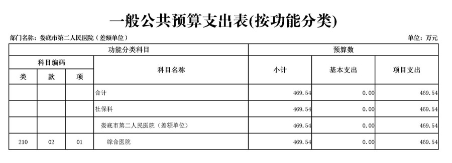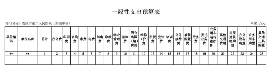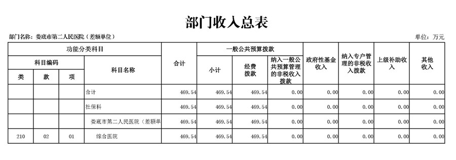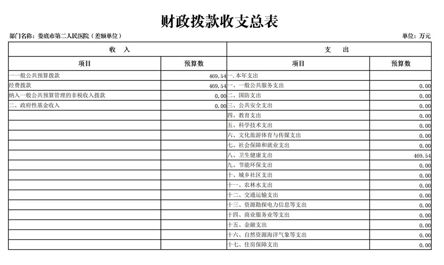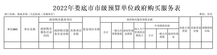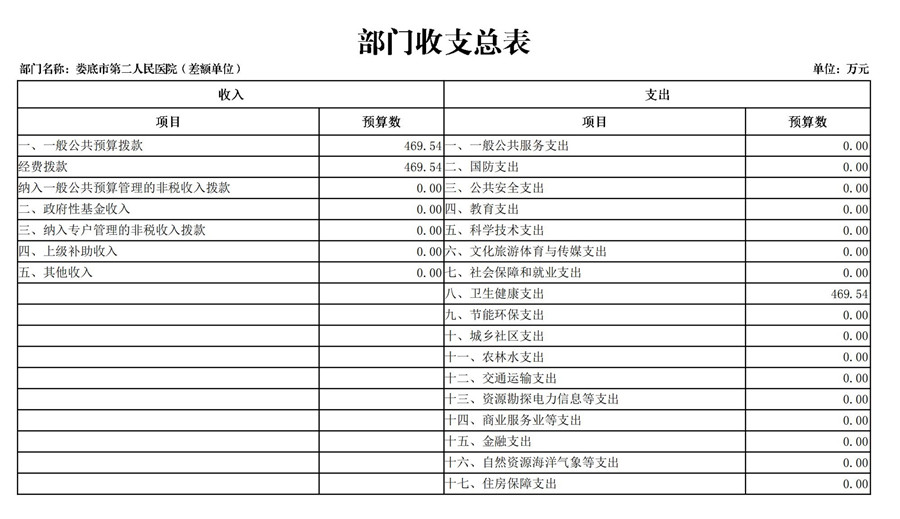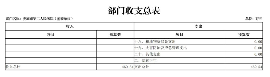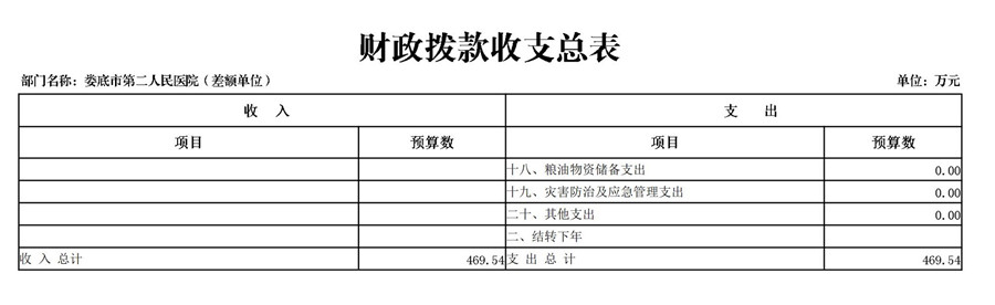 2022 年部门预算只包括娄底市第二人民医院(差额单位) 本级预算情况。收入包括一般公共预算拨款等收入;支出包括保障本级基本运行的经费。