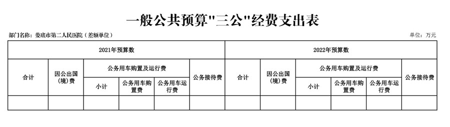 (二)“三公”经费预算:2022 年“三公”经费预算数为0.00 万元,其中,公务接待费 0.00 万元,公务用车购置及运行费 0.00 万元(其中,公务用车购置费 0.00 万元,公务用车运行费 0.00 万元),因公出国(境)费 0.00 万元。2022 年“三公”经费预算与 2021 年持平。